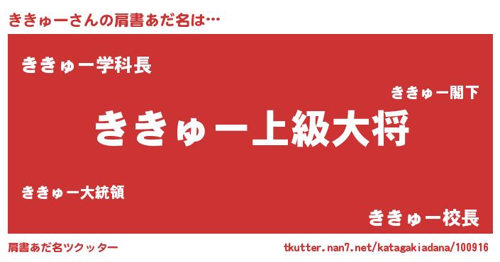 | ヒーロー風カッコイイあだ名 | 『慈愛の使者ききゅー』『ネオキキュー』 |