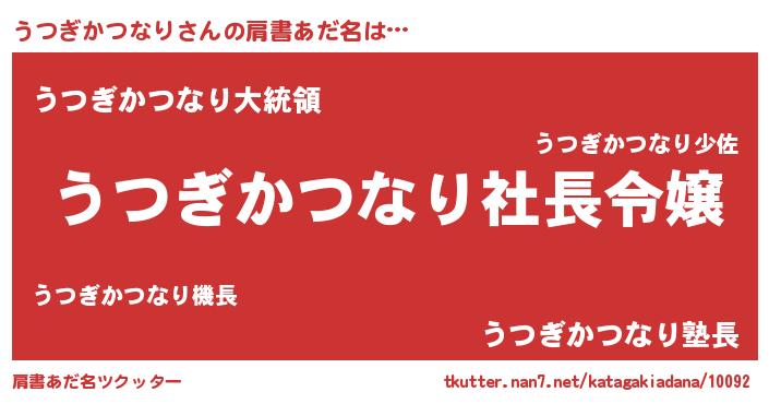 | 男性向けラノベタイトル風あだ名 | 『うつぎかつなりの憂鬱』 |