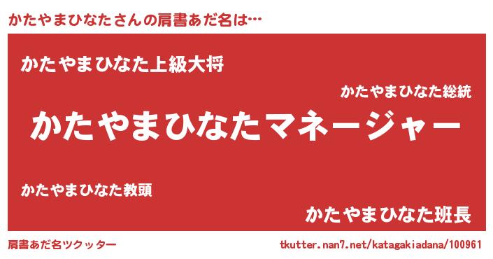 | 男性向けラノベタイトル風あだ名 | 『はたらくかたやまひなたさま!』 |