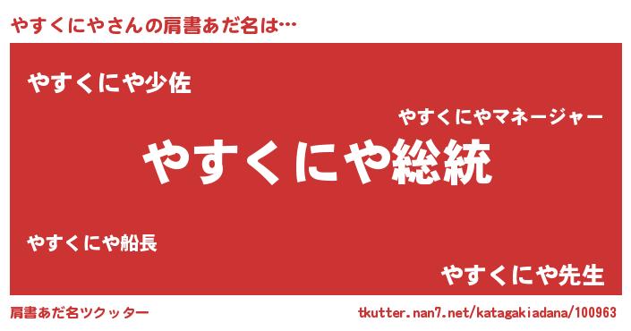 | 女子向けラノベタイトル風あだ名 | 『やすくにやなんてお断りですっ。』 |