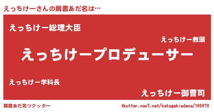 | 男性向けラノベタイトル風あだ名 | 『えっちけーに滅ぼされるだけの簡単なお仕事です』 |