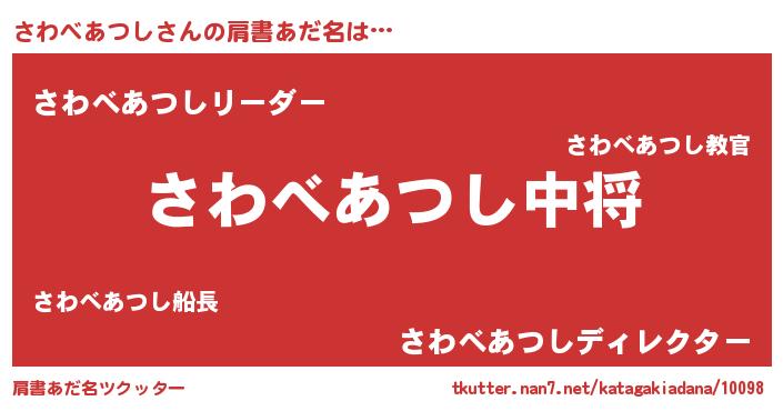 | ポケモン風あだ名 | 『サワキング』『ヒサワベアツシ』 |