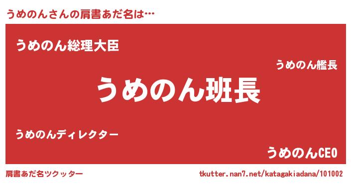 | 意味不明あだ名 | 『とにかく怪しいうめのん』 |