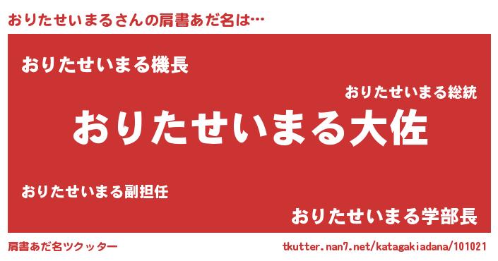 | 男性向けラノベタイトル風あだ名 | 『転生したらおりたせいまるだった件』 |