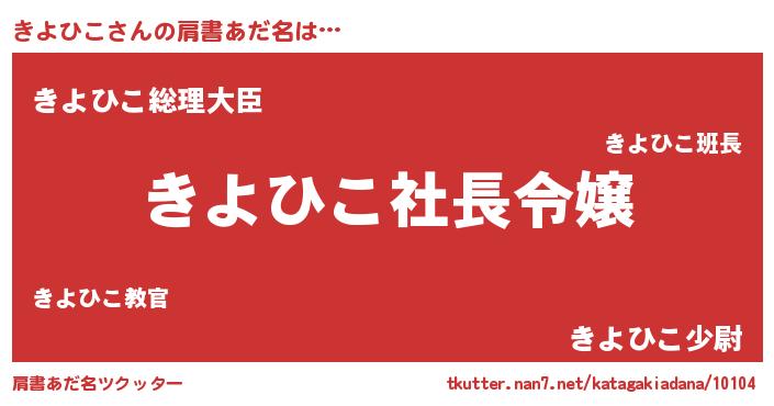 | 女子向けラノベタイトル風あだ名 | 『きよひこ姫と円卓の騎士』 |
