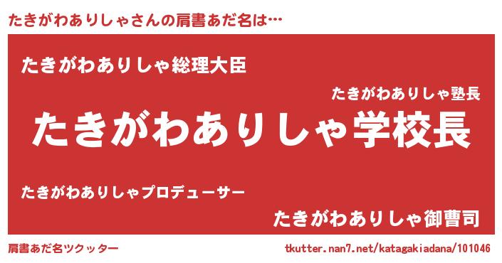 | 胡散臭い通販商品みたいなあだ名 | 『モンドセレクションを受賞したイリジウム磁石…その名も「たきがわありしゃ」』 |