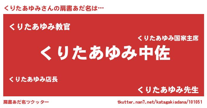 | 女子向けラノベタイトル風あだ名 | 『くりたあゆみの玉の輿計画!』 |