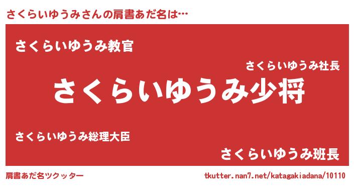 | 男性向けラノベタイトル風あだ名 | 『サクライユウミスレイヤー』 |