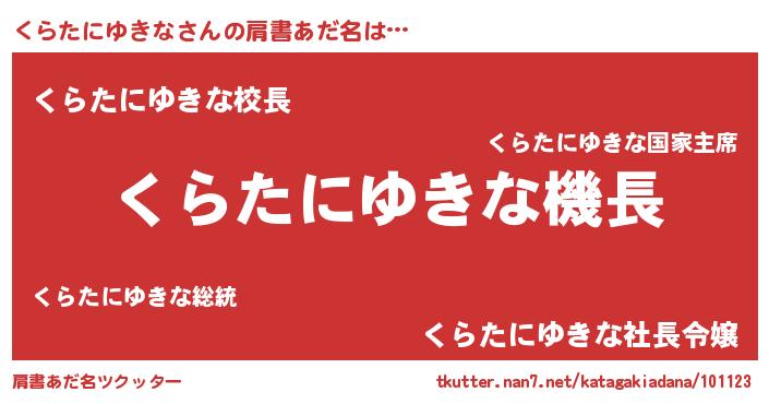 | 男性向けラノベタイトル風あだ名 | 『うちのくらたにゆきなが世界を掌握している!』 |