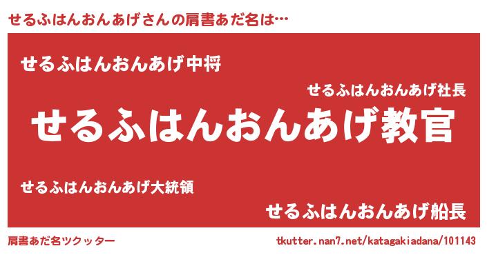 | 伝説のあだ名 | 『伝説のスナイパーせるふはんおんあげ』 |