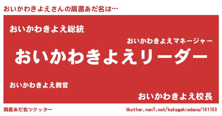 | 男性向けラノベタイトル風あだ名 | 『おいかわきよえの嫁は女の子じゃないと思った?』 |