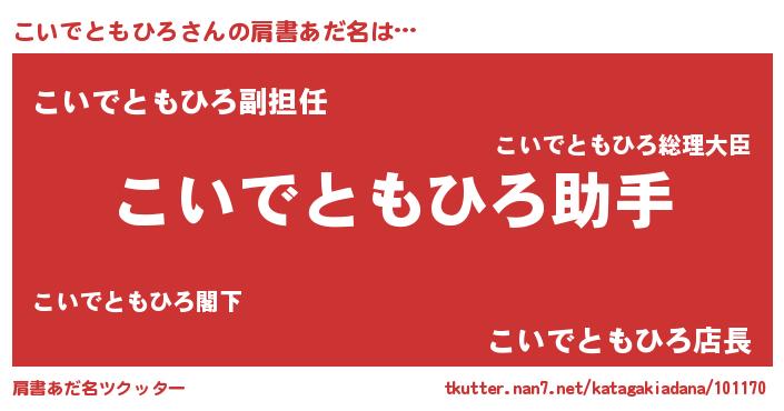 | ヘコむあだ名 | 『こいでともひろ(笑)』『こいっふぃ~』 |