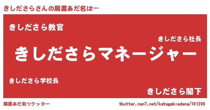 | 意味不明あだ名 | 『住所不定無職きしださら(9歳)』 |