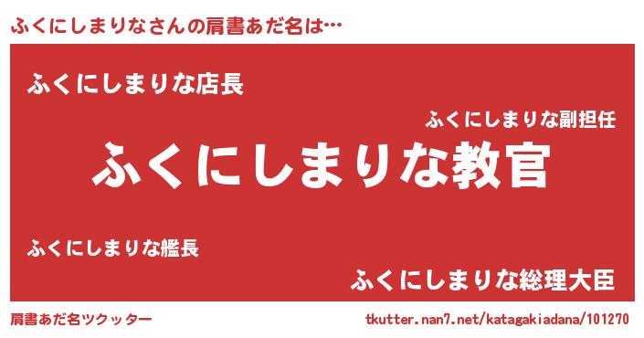 | 男性向けラノベタイトル風あだ名 | 『この素晴らしい世界にふくにしまりなを!』 |