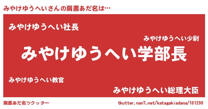 | 男性向けラノベタイトル風あだ名 | 『ノーゲーム・ノーミヤケユウヘイ』 |
