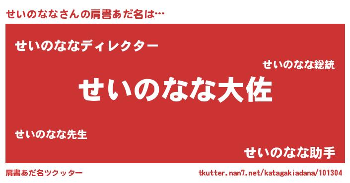 | ヘコむあだ名 | 『せいのなな(笑)』『せいにゅー』 |