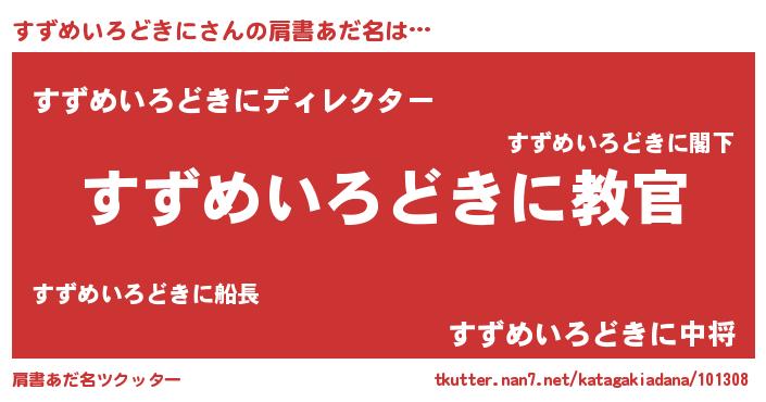 | ヘコむあだ名 | 『すずめいろどきに(笑)』『すずにゅー』 |