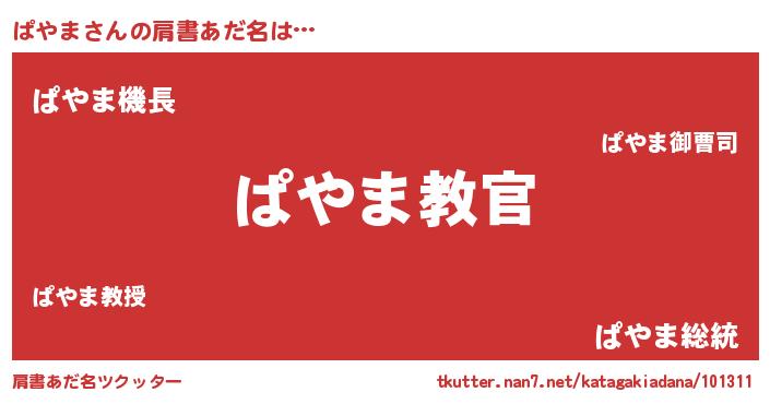 | 男性向けラノベタイトル風あだ名 | 『魔弾の王とぱやま』『ぱやまの憂鬱』 |