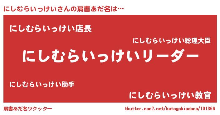 | 男性向けラノベタイトル風あだ名 | 『ダンジョンににしむらいっけいを求めるのは間違っているだろうか』 |
