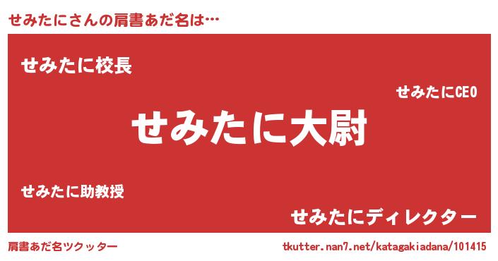 | 胡散臭い通販商品みたいなあだ名 | 『来世でも幸せになれる健康食品…その名も「せみたに」』 |
