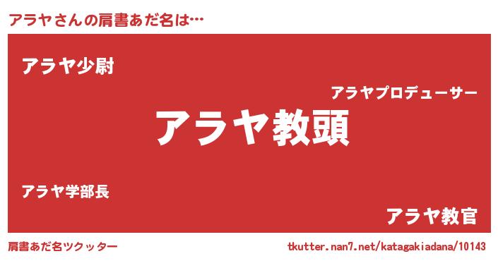 | ヒーロー風カッコイイあだ名 | 『ネオアラヤ』『仮面アラダー』 |