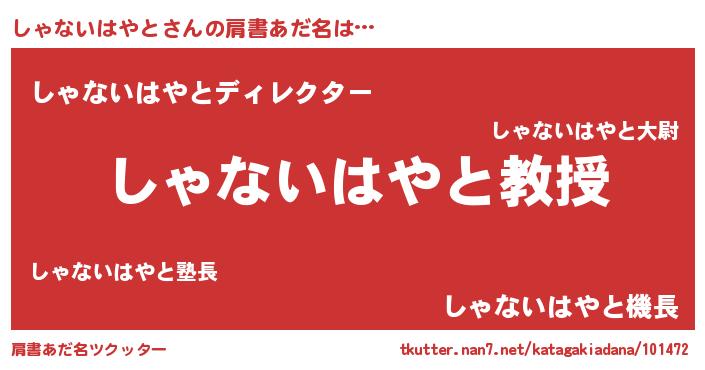 | 男性向けラノベタイトル風あだ名 | 『おまえをオタクにしてやるから、俺をしゃないはやとにしてくれ! 』 |