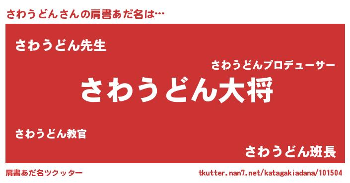 | 男性向けラノベタイトル風あだ名 | 『転生したらさわうどんだった件』 |