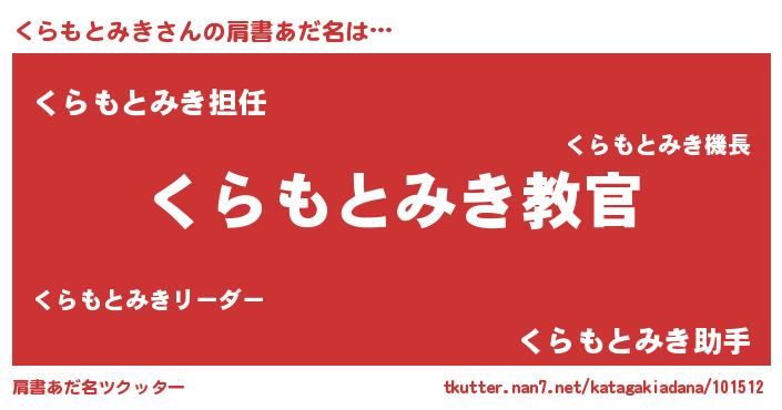 | ヘコむあだ名 | 『くらもとみき(爆)』『くらっちょ』 |