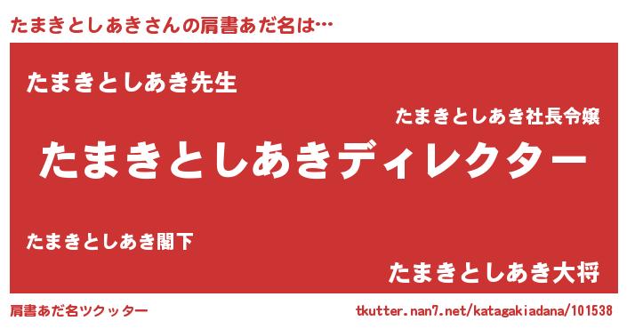 | 男性向けラノベタイトル風あだ名 | 『たまきとしあきに滅ぼされるだけの簡単なお仕事です』 |