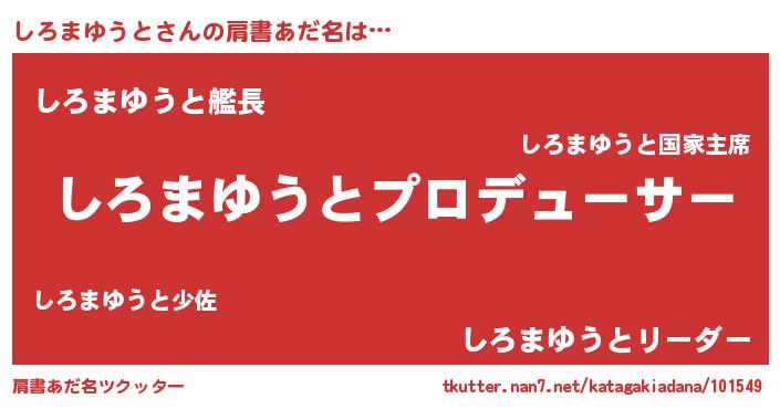 | 意味不明あだ名 | 『とにかく怪しいしろまゆうと』 |