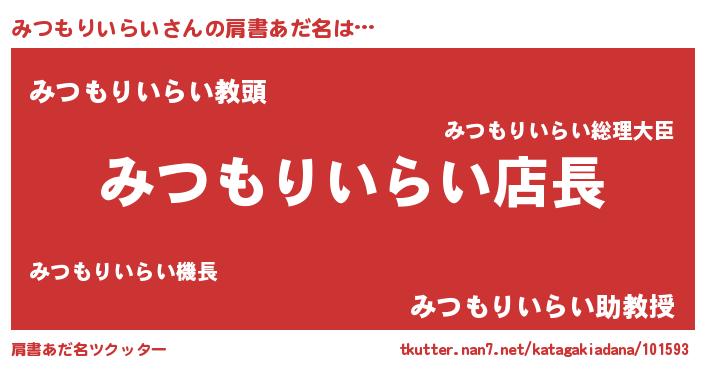 | ヘコむあだ名 | 『みつにゅー』『みつもりいらい(笑)』 |