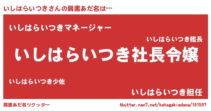 | 男性向けラノベタイトル風あだ名 | 『いしはらいつきの憂鬱』 |