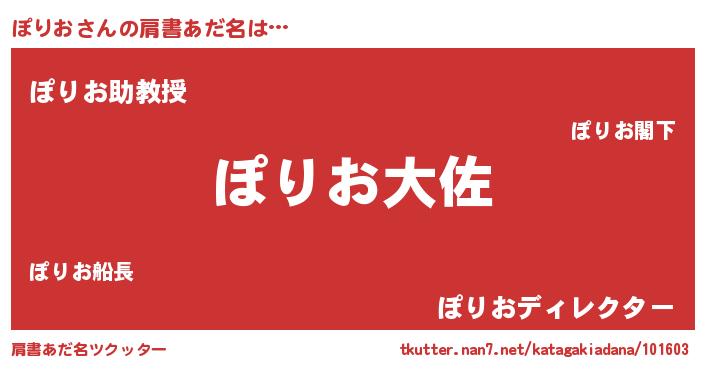 | 意味不明あだ名 | 『たけのこ科ぽりお属』『自称ぽりお』 |