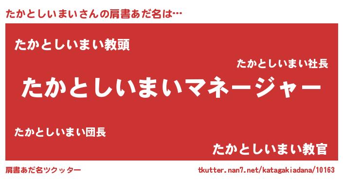 | 男性向けラノベタイトル風あだ名 | 『はたらくたかとしいまいさま!』 |
