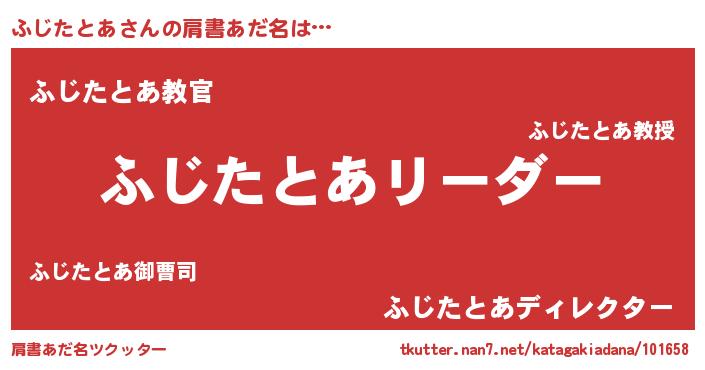 | 意味不明あだ名 | 『とにかく怪しいふじたとあ』 |