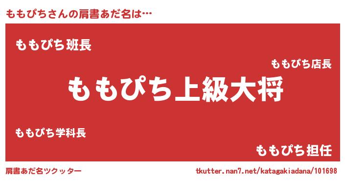 | ヒーロー風カッコイイあだ名 | 『天弓騎士モモ』『ネオモモピチ』 |