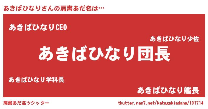 | 胡散臭い通販商品みたいなあだ名 | 『全米が絶賛したサプリメント…その名も「あきばひなり」』 |