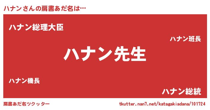 | ファンタジー風あだ名 | 『ハナディッシュ』『エターナルハナンー』 |