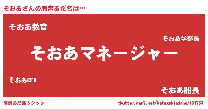 | ヒーロー風カッコイイあだ名 | 『仮面ソオダー』『正義の使者そおあ』 |