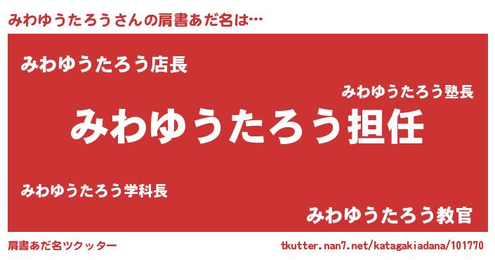 | ヘコむあだ名 | 『みわゆうたろう(苦笑)』『みわにゅー』 |