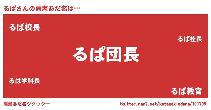 | ヘコむあだ名 | 『るぱを』『るぱ(笑)』『るぱもー』 |