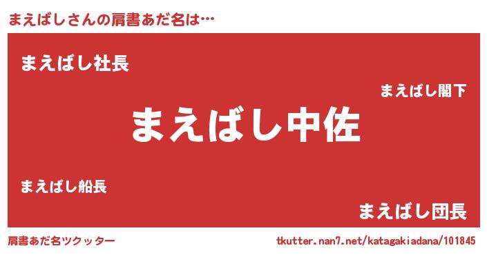 | 男性向けラノベタイトル風あだ名 | 『マエバシスレイヤー』『まえばしの憂鬱』 |
