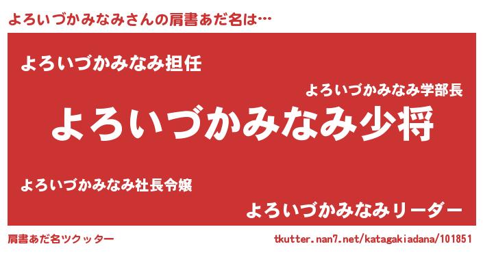 | ヘコむあだ名 | 『よろいづかみなみ(苦笑)』『よろっぺ』 |