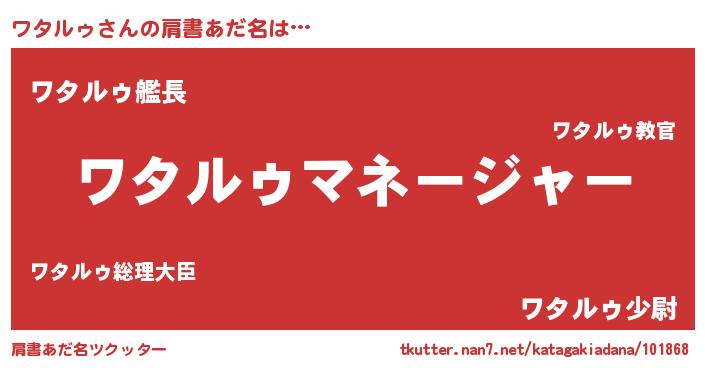 | ヒーロー風カッコイイあだ名 | 『仮面ワタダー』『ウルトラワタルゥマン』 |