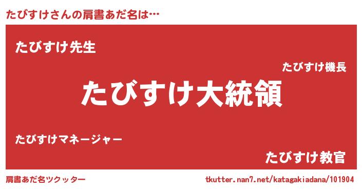 | ヒーロー風カッコイイあだ名 | 『ウルトラたびすけマン』『ネオタビスケ』 |