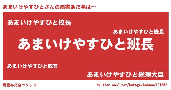 | 男性向けラノベタイトル風あだ名 | 『あまいけやすひとの嫁は女の子じゃないと思った?』 |