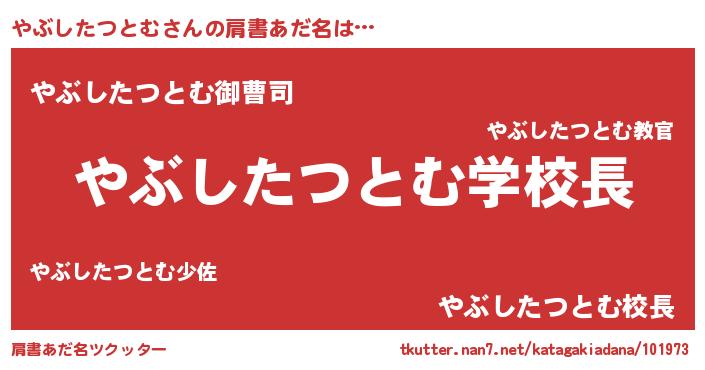 | ヘコむあだ名 | 『やぶにゅー』『やぶしたつとむ(震え声)』 |
