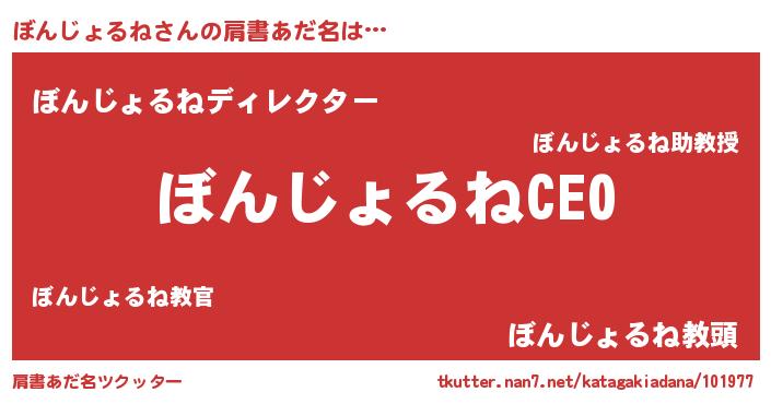 | 男性向けラノベタイトル風あだ名 | 『ぼんじょるねの憂鬱』 |