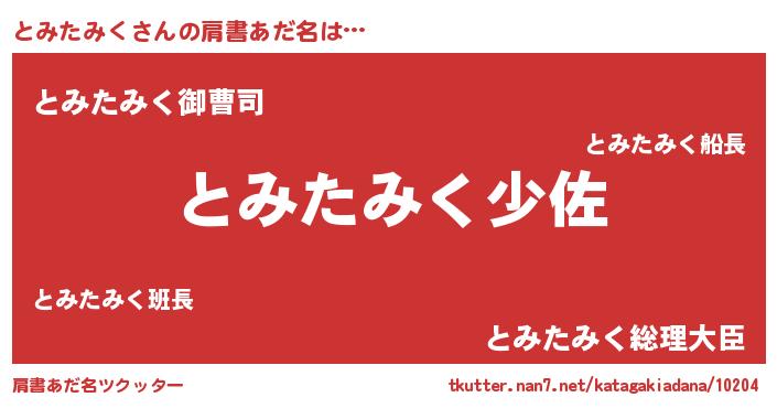 | 男性向けラノベタイトル風あだ名 | 『とみたみく~年齢イコール彼女いない歴の魔法使い~』 |