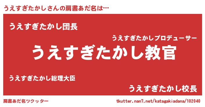| 意味不明あだ名 | 『住所不定無職うえすぎたかし(77歳)』 |